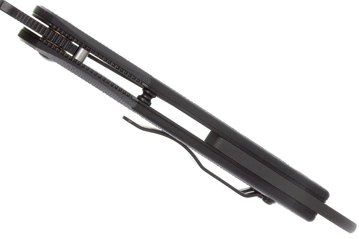 El Fox Mini Karambit es un karambit compacto y plegable. El mango G10, combinado con el anillo para los dedos, proporciona un agarre increíble. La hoja de acero N690Co se entrega muy afilada. Esto es muy conveniente, porque afilar una hoja con un amolado cóncavo es siempre complicado. Existen diferentes opciones para abrir este cuchillo. Puedes utilizar el orificio para el pulgar, el flipper o la onda Emerson. Este es el gancho en la parte posterior de la hoja. Puedes engancharlo a tu bolsillo y así el cuchillo se abrirá automáticamente cuando lo saques del bolsillo.