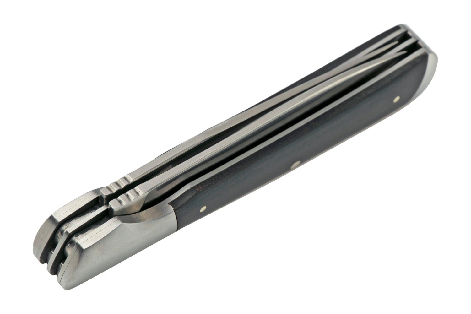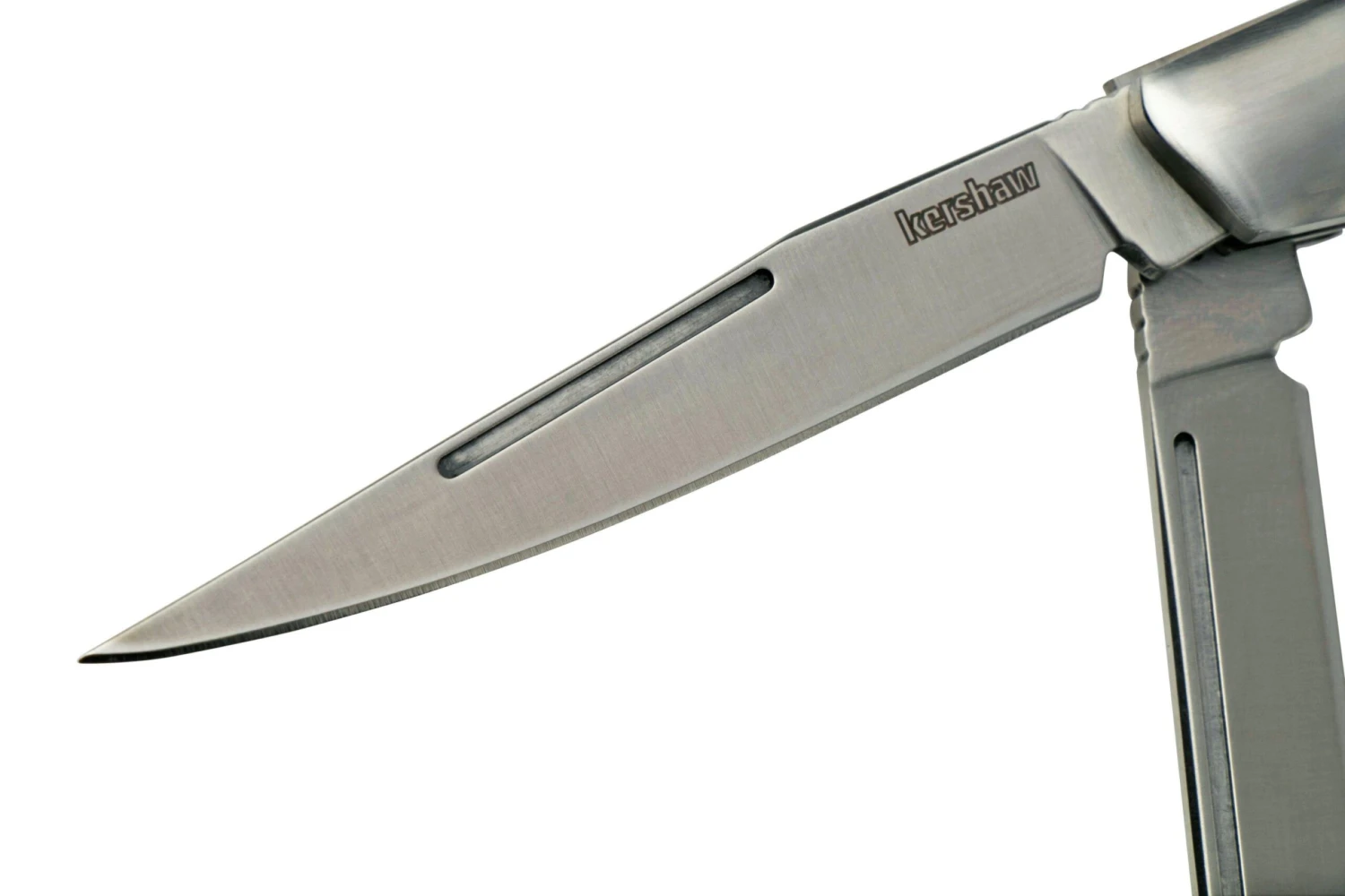 La Kershaw Allegory es una navaja con dos hojas. El cuchillo está inspirado en el tradicional cuchillo de médico. Como su nombre indica, el cuchillo de médico era originalmente para los doctores. El extremo del mango es plano y cuadrado y estaba destinado a triturar pastillas y otros medicamentos. El cuchillo tiene una punta de clip y una hoja de punta de lanza. No son muy diferentes, pero ambos son igualmente versátiles.