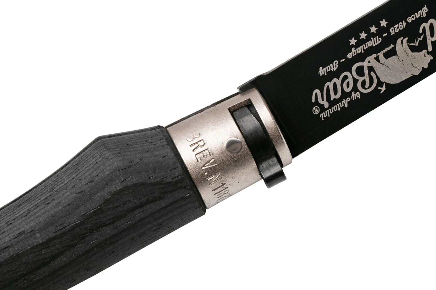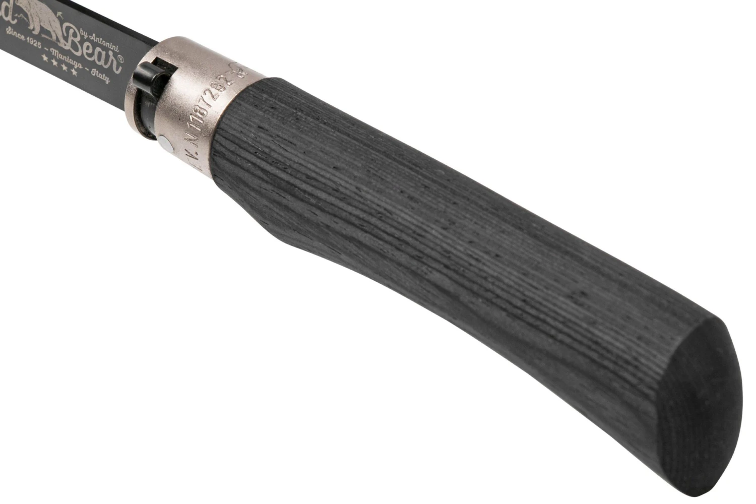 La Old Bear Classical Total Black XL es una navaja clásica de Italia. La hoja se abre fácilmente con la uña. Lo haces con las dos manos. Por ello, el cuchillo puede llevarse legalmente en casi toda Europa. El cuchillo se bloquea tanto cuando está abierto como cuando está cerrado. Es el resultado de un mecanismo Lupo-lock, un bloqueo de anillo que hemos visto en marcas de cuchillos similares pero que puede ser controlado con una sola mano.
