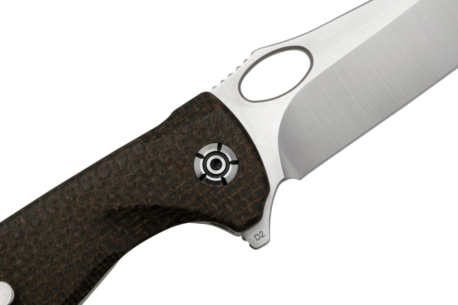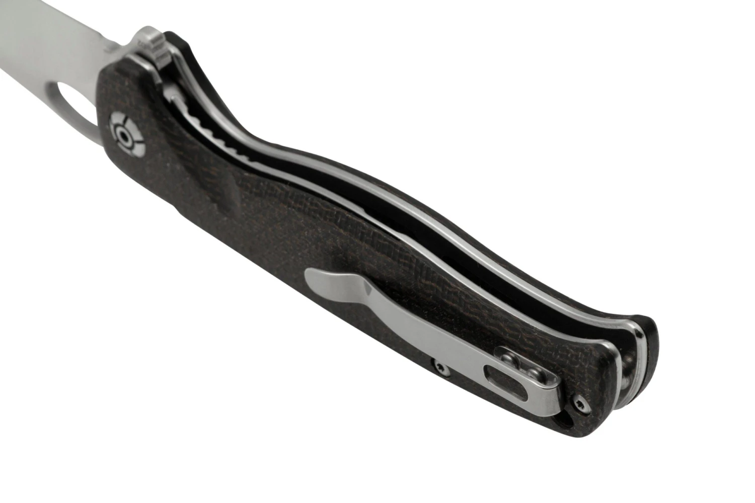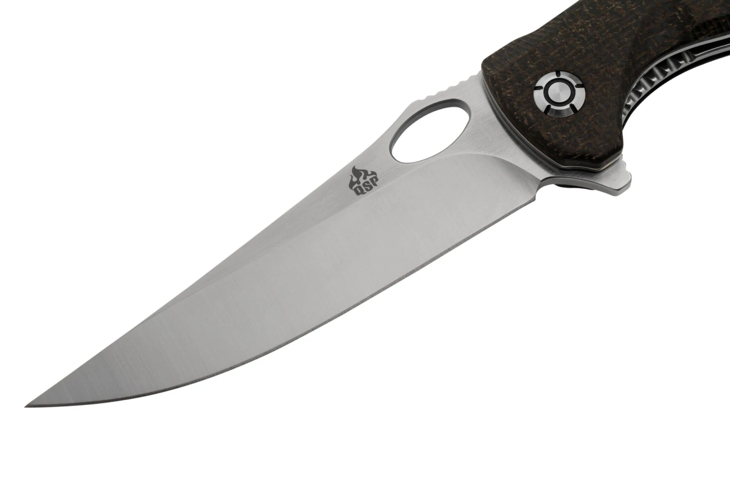 La QSP Knife Gavial Dark Brown Micarta es una navaja bastante delgada con una forma de hoja distintiva. Este cuchillo se abre rápidamente con el flipper y tus dedos se mantienen a salvo gracias al liner lock. El mango tiene una textura fina y ranuras para los dedos, háciendo que sea muy cómodo de sujetar.