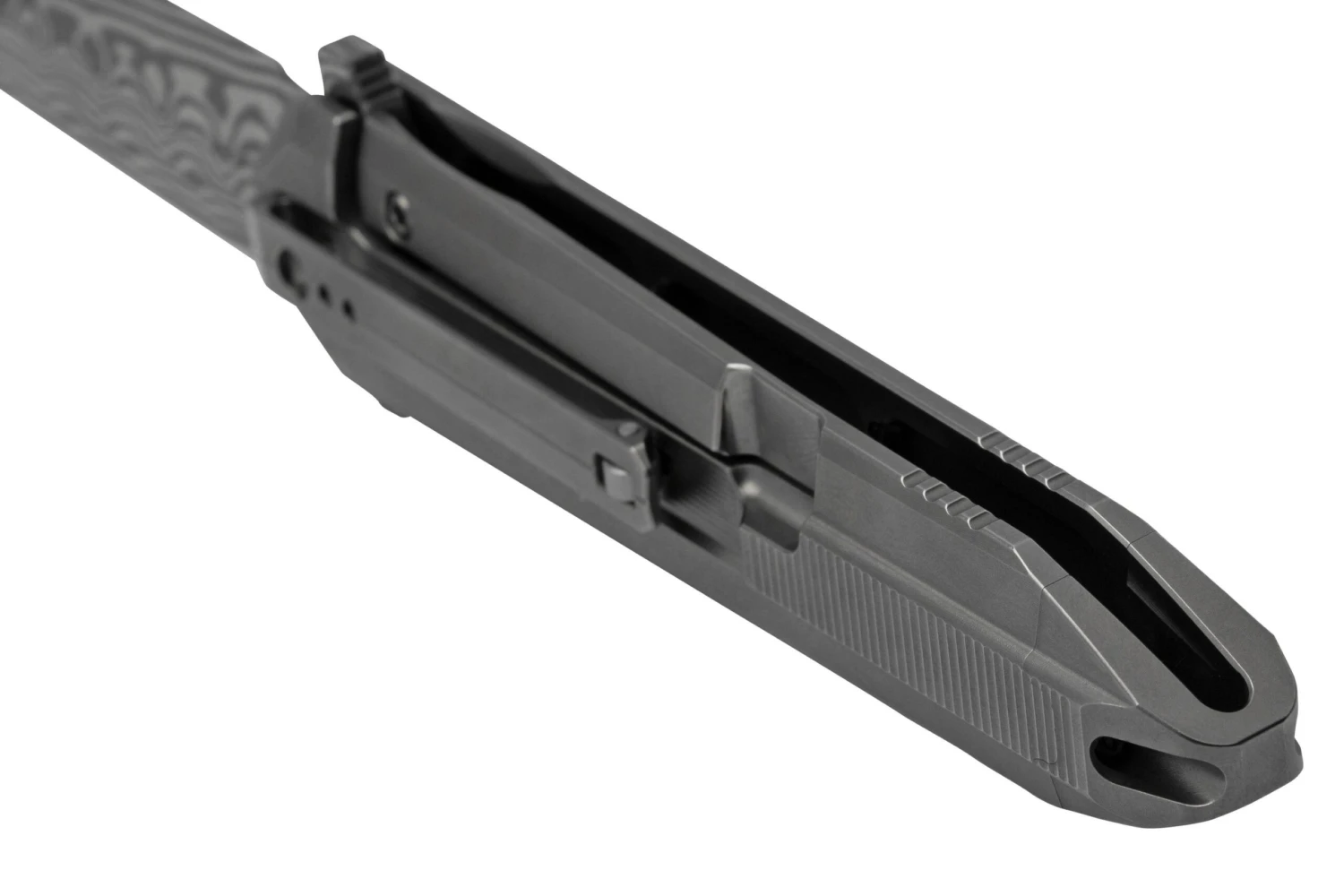 WE Knife Diatomic WE22032-DS1 Gray Bead Blast Titanium, Hakkapella Damasteel Single Edge Navaja